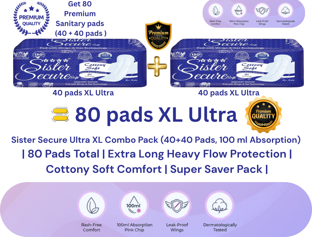 Sister Secure Ultra XL Sanitary Pads – 100 ml Absorption, 40+40 Combo Pack
